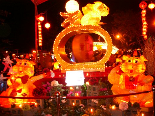 各地都有燈會,宜蘭縣也不例外,已辦了好幾年的燈會,今年地方仍是在員山公園! 聽說這些燈飾都是由宜蘭監獄的受刑人所製作的喔~~ 今年是豬年,所以當然以豬為主題,只是"三隻小豬"實在是眾所皆知,所以有關豬的燈飾,全是三隻群體出現~~