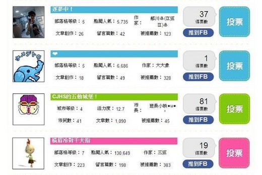 同學有沒有發現,當初報名參加的,不管是那一個組別全都入圍了,接下來,就要靠大家持續的參與與瘋狂的支持了。