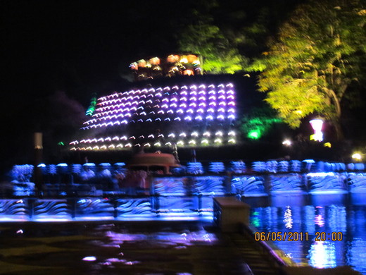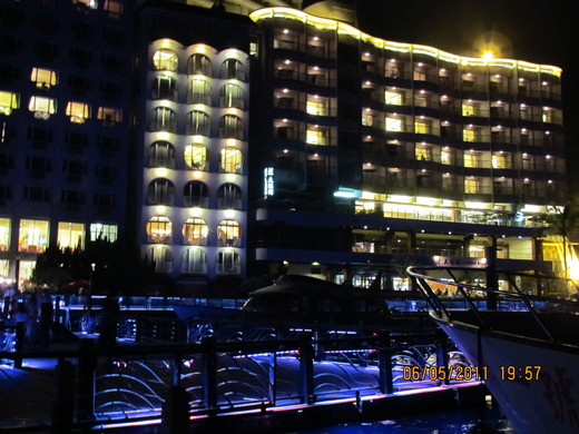 {日月潭附近的飯店,因為年代久遠的關係,夜景看來,亮麗無比,住過之後,卻頗有「金玉其外,敗絮其中」之感。}