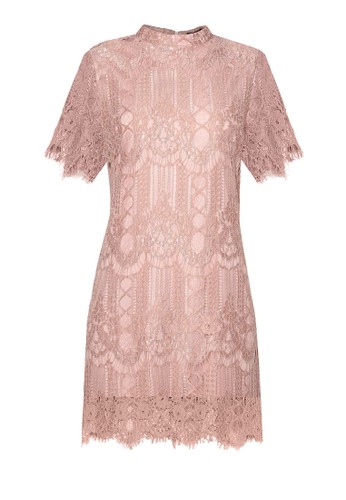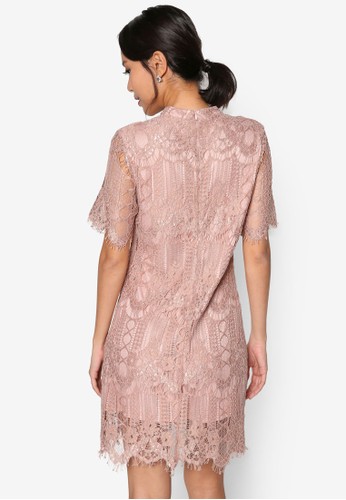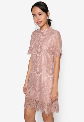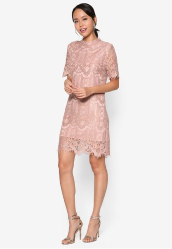 【部落客推薦】ZALORA購物網寬短袖高領蕾絲直筒連身裙, 服飾,esprit outlet 香港 洋裝