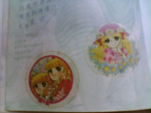 還有,原來我也有買貼紙的!都貼在畢業留言冊上了!只是我的貼紙都是小甜甜跟喬琪,原來少女圖畫是我的最愛呀!不枉我真的也少女過!偏偏我最不會畫少女!『呵呵』!同學大部份都是買帥哥,不知名的日本帥哥貼紙!『好像是漫畫雙子星的主角吧』!最男性化的同學,買的卻是美少男!『哈哈』!