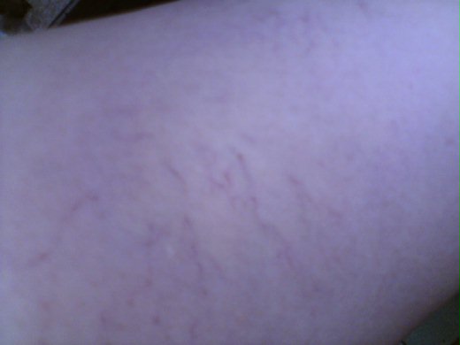 另一邊的大腿更恐怖,除了血絲還有青筋,怕嚇到觀瞻!