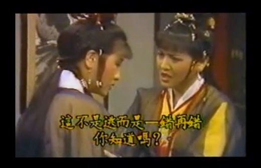 李如麟配許秀年也有『離情依依』,但怎麼比較沒有fu。『七俠五義』的『不讓君離去』---任性,跟『斷腸花』的『勸君快去』---體貼,實在差太多了。終於李如麟、許秀年不再有三角關係,但怎麼是沒有fu。『斷腸花』的『勸君快去』,才值得兩位小生牽掛不已。當自私的只想到自己,真是沒人想理。冥冥之中的離情依依,就真的有人箭穿胸了。