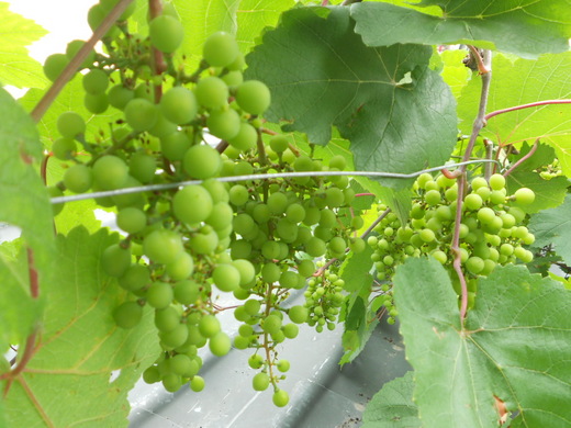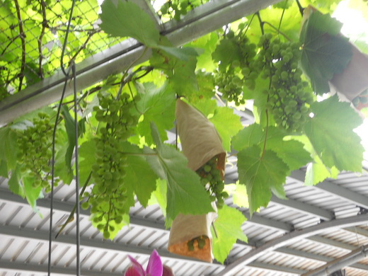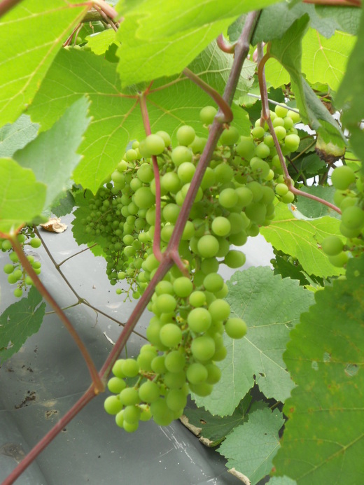 老公在院子裡栽種了兩株葡萄樹 ─ 巨峰葡萄、黑后葡萄。