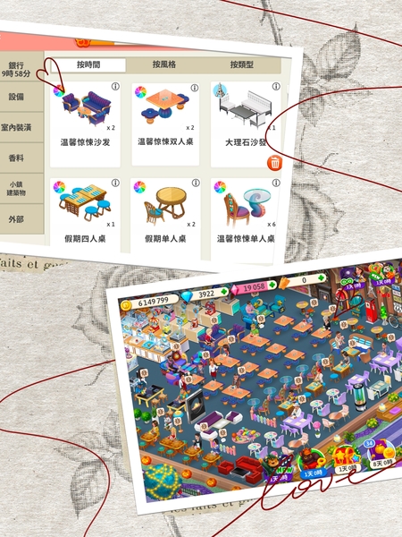 這個遊戲越玩越上癮!餐廳裡每件傢俱、地板、窗户、裝飾、擺設,以及員工制服等全由你精心挑選!更可與顧客互動交流,劇情如同電影般吸引──尋親、偷竊 、劈腿、心魔作怪等狗血情節數之不盡。每天更可挑戰顧客比爾三次常識提問,考驗你的世界認知程度。
