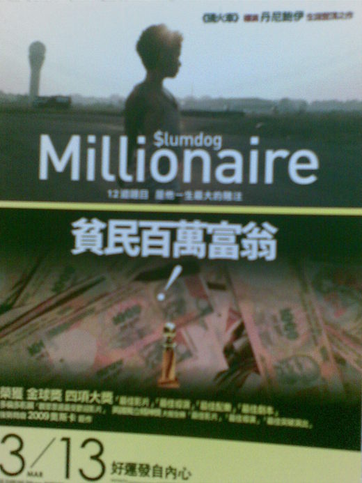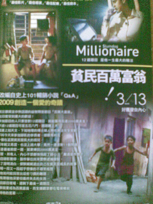 很汗顏的要說,認識印度,幾乎是近幾年的事,年少時聽說過甘地的不合作運動,如果我記得沒錯,當年應是衝著該片得到奧斯卡最佳影片和最佳男主角獎殊榮才上電影院看完那部傳記式電影的,年輕的自己,見識未開,只能用讀教科書的心態硬生生吞下螢幕上一幕幕的冗長演繹.......而今,當BRICs金磚四國這名詞已被過度引介,聚焦在各類傳媒書報,寶來鄔電影也日逐站穩她在電影工業的獨特地位時, 幾位印度友人又因緣際會短暫旅經我的生活圈後,印度的人文,飲食,特別是他們對愛情的浪漫想像,轟轟烈烈追尋,最是讓壓抑內瀲的我大開眼界,印度人的樂天知命更重重憾動了我的價值觀...........看完"貧民百萬富翁",再次驗證我對印度這神秘國度的豐富想像.............