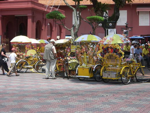 本以為看到古城馬路上競馳而過的花俏人力三輪車後危機警報就可瞬間解除,但是……又來了!我又找不到計畫投宿的Guest House,這就是為什麼我總要把初抵一座未識城鎮的時間安排在大白天的原故,因為這裡可不是台北、宜蘭或桃園,就算我想問路也得祈禱對方能通英文或是華人後裔,可是人不可貌像、人心隔肚皮,我又怎能不謹慎看待這些給我意見的異國陌路哩?!