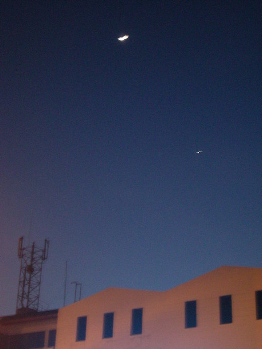 都九點了哩!?踏出Hotel大門抬頭看見螢光藍的夜空懸吊著一只枯瘦的月,我不禁心酸了起來;這古城的初探可真是百轉千折、驚險不斷啊!一程又一程的奔波,一路又一路的尋索,一次又一次的危機,最終老天爺才肯以這藍藍夜空裡迷朦的一彎弦月慰撫我這個落難旅人------但畢竟這已是不幸中的大幸了對不?!我不該在這個時候想家的,都怪那月光.....。出門遠遊的第十天,第一次我想念在臺灣的家人,而這也是第一次我發現;在台北租賃來的頂樓小屋過生活,也許樸實辛苦,但卻溫馨愜意沒什麼能比。