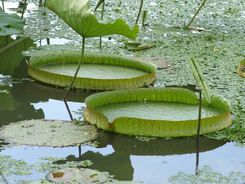 大王蓮原產於亞馬遜河流域(巴西)最大的葉子直徑2.8公尺,入夜開花,日間合閉,葉大如小船,可乘坐小孩o大王蓮,原產於熱帶的亞馬遜流域,