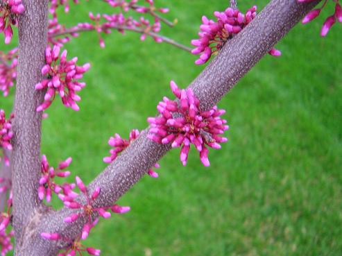 紫荊屬於豆目花卉,是落葉小喬木或灌木,早春未出葉時先開花,花蕾及話為玫瑰紅色,綴滿枝條,因此也叫「滿條紅」、「珊瑚樹」。花為假蝶形花冠。非常壯觀,在晉朝時即已經被引種為庭院樹。花謝後密生綠色莢果,在樹上一年不落,直到第二年春天,新花蕾出現才脫落。,紫荊耐寒、耐熱但不耐澇,葉為圓心形,花落時才吐芽。