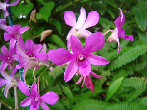 2)秋石斛蘭(熱帶型常綠種):主要為Dendrobium phalaenopsis Fitzg,假球莖成熟後,在溫暖、短日照環境下開花,因此在夏末秋天開花。