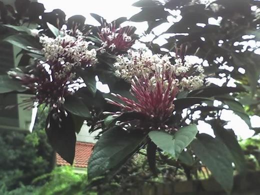 其實這煙火花我本來也沒見過,有次我走路要去醫院之時在一家圍牆高築的住家圍牆外我忽然看到讓人驚豔的"煙火花"...因為沒有帶相機..所以用手機拍下這盛開的一幕。(因為手機效果比較差..有點矇矓的感覺)