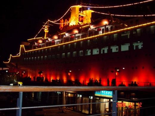 我們去那晚風有點大,輪船前是個大廣場,咖啡館四處林立。