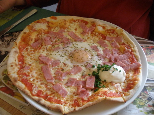 I love the sunny side up egg in center of pizza. It taste so good while using the york as a dip.