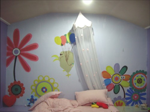 牆面是我跟曼子漆的,圖樣是咪子設計,上色是我和咪子。