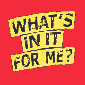 英文有一句成語說What in it for me?(WIIFM)意思是這件事與我有何關係,或是對我有好處?若覺得某一件事與我沒有切身利益或任何關係,就不去關心、參與、或協助,並置之度外。