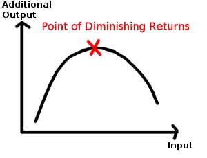 同樣的東西經過一段時間之後,它的效益沒有持續增加或持平,反而下降了。經濟學上稱這種現象為「邊際報酬遞減法則」(Law of Diminishing Marginal Returns)。