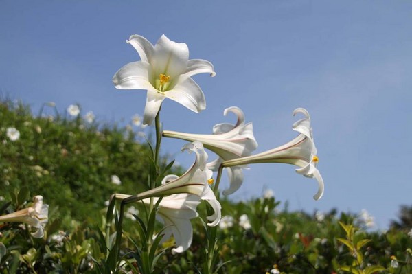 看到百合花就讓我想起年輕時看過的一部影片,原文的片名是「野地裡的百合(The lilies of the field),中文片名翻譯為「流浪漢」。此片是由著名黑人影星薛尼鮑迪(Sidney Poitier)主演。故事的情節是一個到處打零工為生的年輕人,一日開車經過美國亞利桑納州沙漠邊緣的一個小地方,無意間闖進幾位才由歐洲移民進來的修女住的地方。一位年長的修女要求他幫他們修補一處會漏的屋頂,年輕人敏捷地完成了。晚餐過後,年輕人跟這位資深的修女結帳,請求支付所發生的材料費和工資。但年長的修女並沒有意思要支付他的工資。知道這些剛移民進美國的修女們英文不流利,於是年輕人拿出聖經,引用路加福音10:7的一句話說:「你們要住在那家,吃喝他們所供給的,因為工人得工價(資)是應該的...」。年長的修女瞭解他的意思,於是在年輕人的香菸盒子上寫下馬太福音6:28、29,要這位年輕人唸出來。於是年輕人看著聖經唸著說:「何必為衣裳憂慮呢?你想野地裡的百合花怎麼長起來?它不勞苦,也不紡線。然而我告訴你們,就是所羅門極榮華的時候,他所穿戴的,還不如這花一朵呢!……野地裡的草今天還在,明天就丟在爐裡,神還給它這樣的妝飾,何況是你們呢?所以,不要憂慮說,吃什麼?喝什麼?穿什麼?……所以,不要為明天憂慮,因為明天自有明天的憂慮,一天的難處一天當就夠了。」