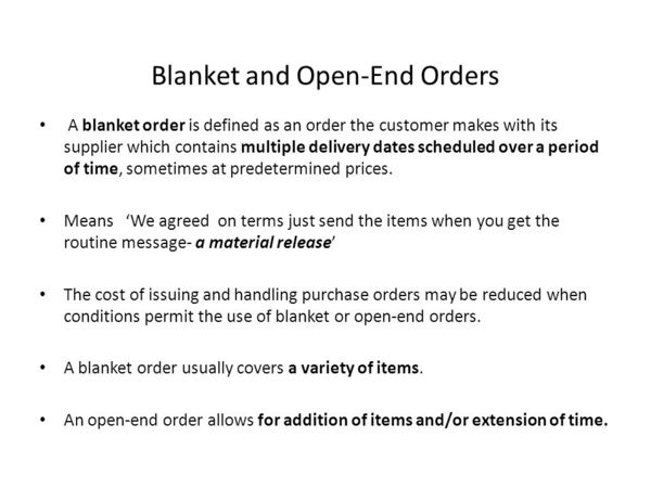 開口訂單(Open-Ended Order)是一種訂單的形式,通常涵蓋一段較長的時間如一季、半年、一年要採購的品名、數量、單價或金額等,但是沒有訂明具體的交期或數量,以保留交期和數量的彈性。在訂單涵蓋的期間和範圍內買方會另外以排程或書信、電話語音等方式通知賣方生產和出貨,此種作法類似總括性訂單(Blanket Order)。生活中是否也有某些商品是採取這種訂單方式?