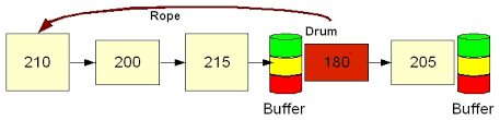 緩衝(Buffer)通常是指生產線等待加工處理的原物料或半成品。在限制理論(TOC)裡指的是有意置於瓶頸站之前的存貨或出貨前的庫存或提前送達的一段時間,以保護瓶頸不會因為前面工作站的延誤而無法加工生產。緩衝因而可分為存貨緩衝或時間緩衝。生活中一般人何時會使用存貨緩衝或時間緩衝?
