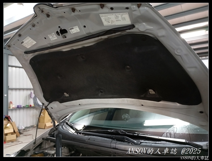 車主要換掉引擎蓋隔熱棉和隔音膠墊 , 引擎室有髒 , 陳年油污油漬