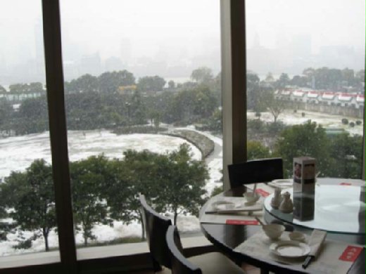 今年,上海難得的大雪,讓這沿岸的風景,增添一絲雪國風光,我上海的朋友剛好也去那裡用餐,留下這美麗的照片給我做紀念。
