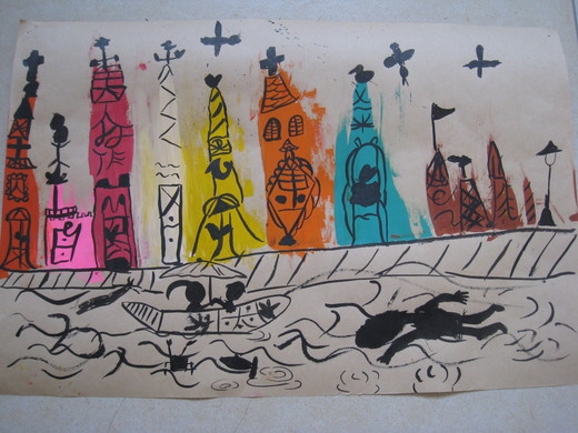 而且還畫出有人在河裡游泳, 真的很有自己的想法