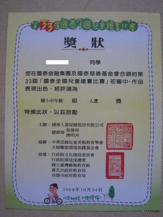 是她幫學生投稿國泰人壽畫畫比賽, 主題是"我愛的地球"之類的題目