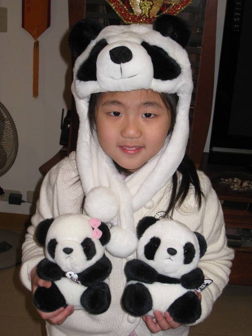 剛好在市林夜市逛街時看到了熊貓帽子, Melody帶在頭上煞是好看..