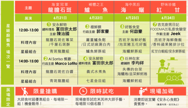 無法親臨現場的民眾,也可透過”安永鮮物粉絲團”線上直播觀看各場廚藝表演,並參加直播好康活動。