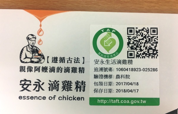 ▲圖:滴雞精外盒皆貼有農科院產銷履歷標誌,消費者可溯源