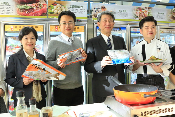 ▲安永鮮物野生海魚上市發表會 左起_安永食安中心_陳鈴霓協理、富善漁業_呂政達執行長、崇越集團_郭智輝董事長、國宴名廚_雷議宗主廚