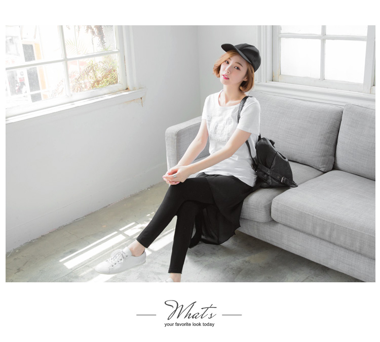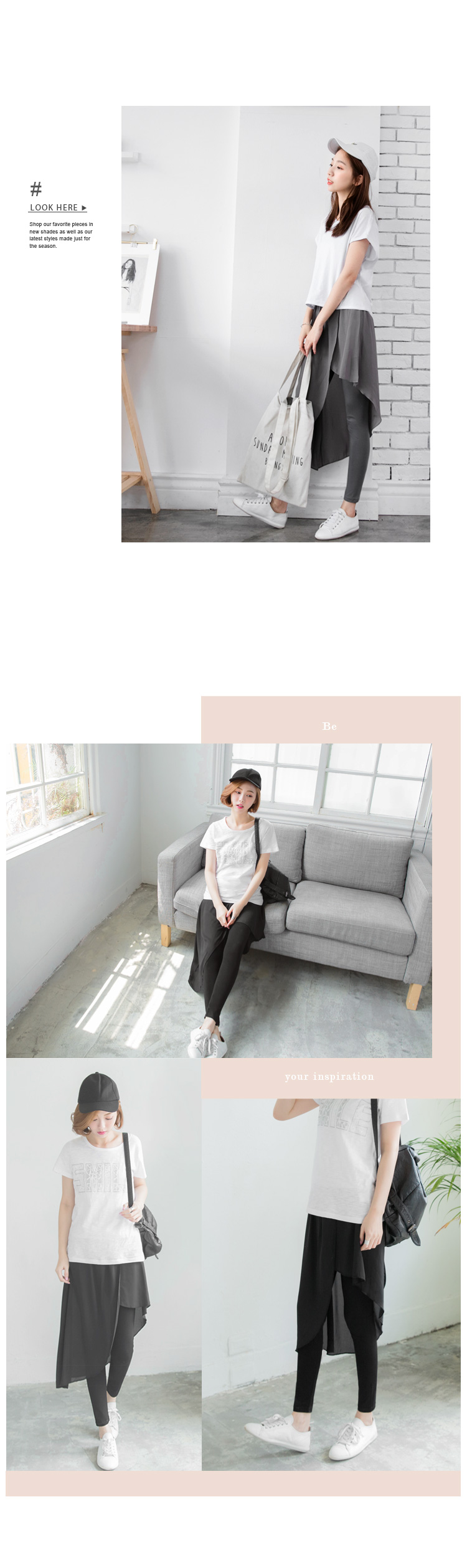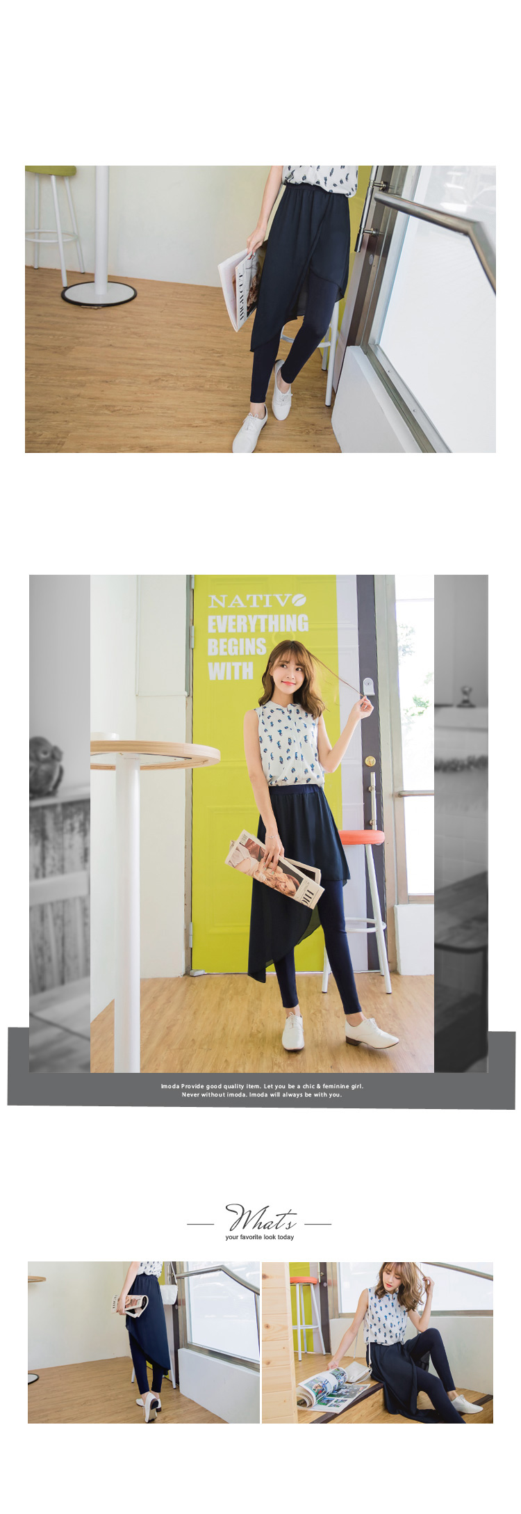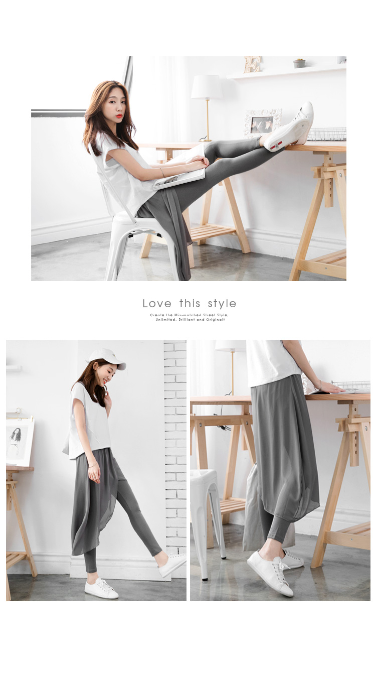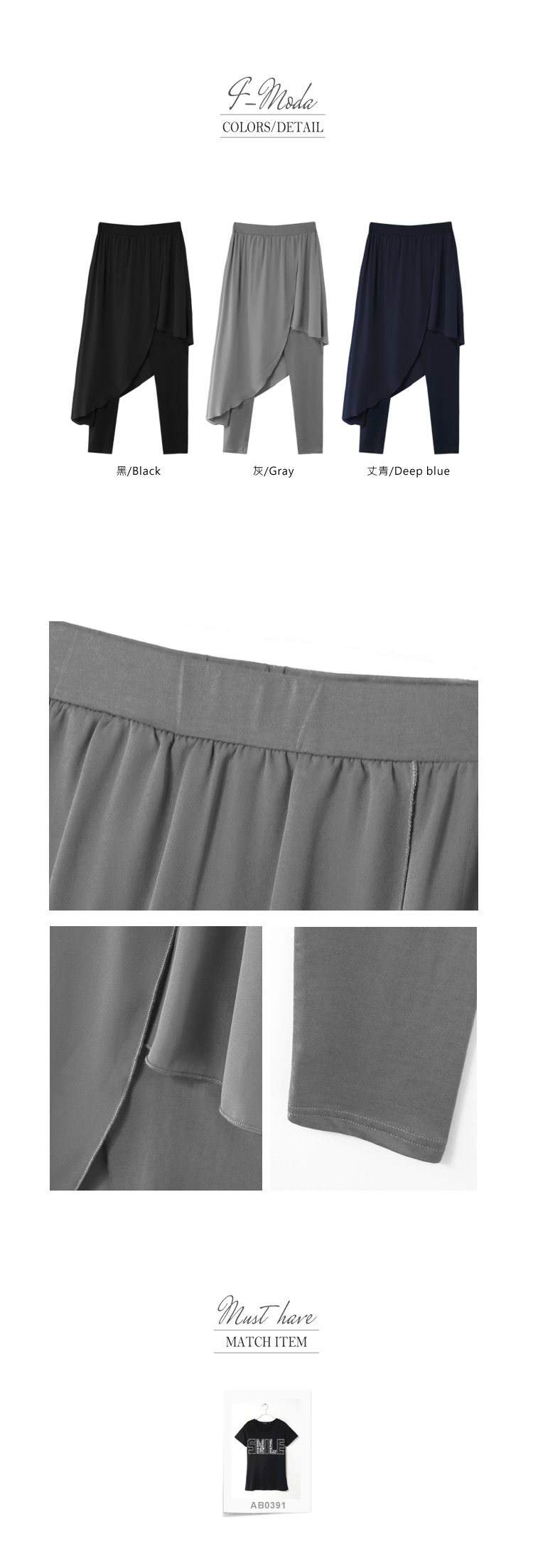 0613新品 假兩件不規則雪紡裙襬鬆緊內搭褲.2色