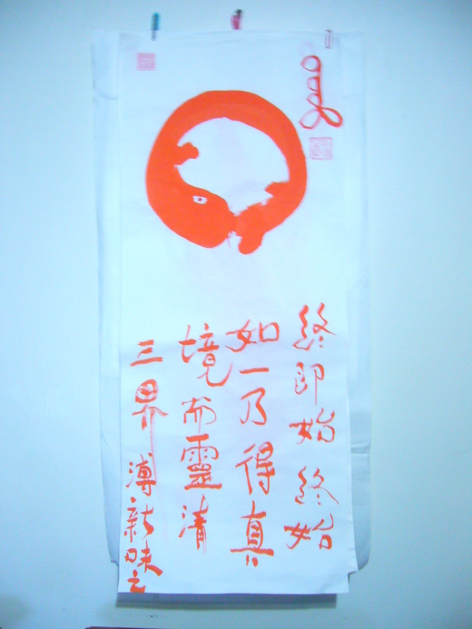 這是2011年1月15日求畫, 孚聖(孚佑帝君、呂仙公、純陽祖師)指導末學的箴言。「終即始 始終如一 乃得真境而靈清三界」如照片。