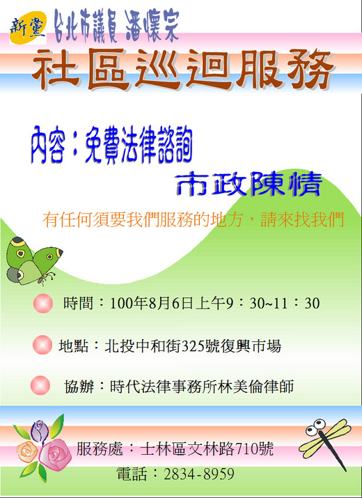 活動內容:免費法律諮詢、市政陳情