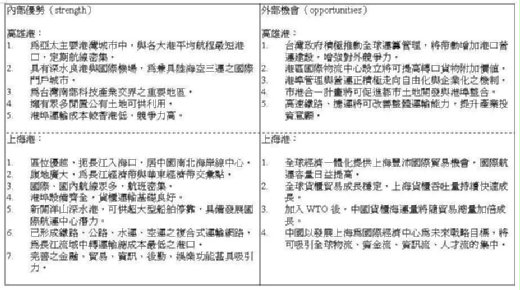 表5.1:高雄港與上海港SWOT分析比較
