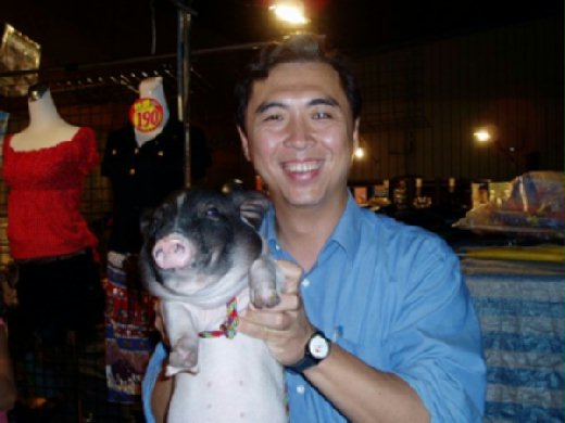 陳學聖昨晚於三民區夜市拜票時,巧遇攤商飼養一對可愛的豬與狗,兩者間互動像極親密好友,引起民眾圍觀,此豬與陳學聖甚是有緣,抱起時頻頻在其身上撒嬌,連飼主都感到好奇。陳學聖開玩笑解釋說,或許阿妹(此麝香豬之名)知道碰上動物保護協會理事長了,眾人皆感有趣。