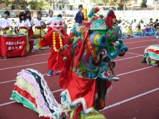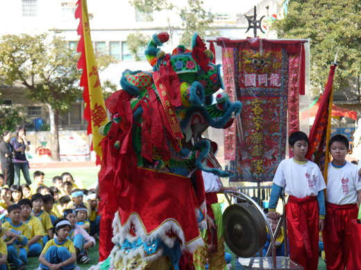 被客家鄉親視為吉祥物的神獸麒麟,一向在客家文化中有著崇高的地位,學聖今天在龍岡國小的50年創校紀念中,首度看到了由龍岡國小學生組成桃園縣唯一的客家麒麟隊 。
