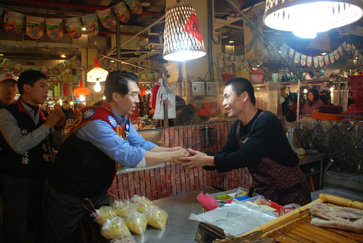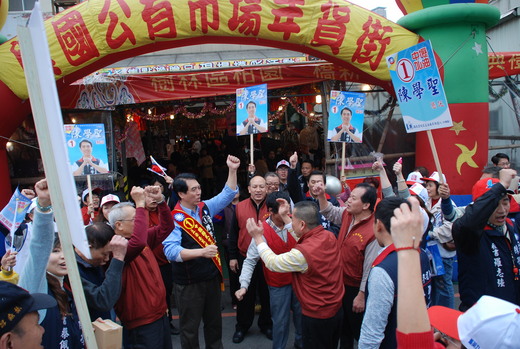 陳學聖本人則親自在環北路、延平路口向行經的路人及汽機車駕駛懇託,許多民眾紛紛停下來趨前與陳學聖握手,也表示明天一定會去投票。稍後,陳學聖轉往興國市場向攤商及採買的民眾拉票,一進入市場,受到現場民眾熱情歡迎,甚至有民眾主動高呼“陳學聖凍蒜”,氣氛相當熱烈。
