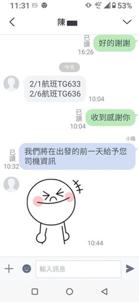 感謝陳小姐預定機場接送服務