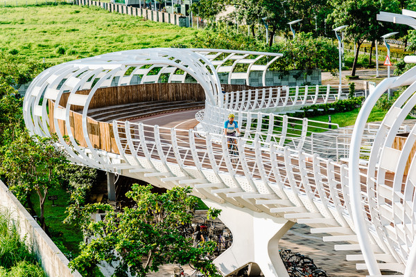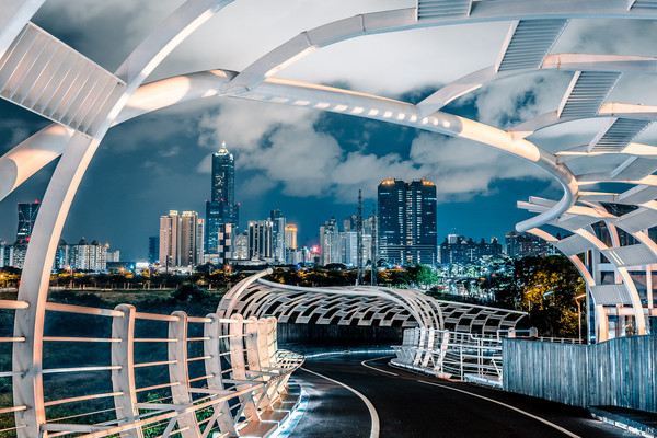 高雄港都夜景美得令人心曠神怡,在舒服的夜晚騎著單車是最愜意的休閒娛樂了,高雄第二座自行車橋「前鎮之星 」, 以星光城市風格打造專屬腳踏車及用路人的浪漫天橋,純白的流線型結構設計,不論是白天或夜晚景色都非常壯觀漂亮。