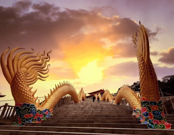 位於南投中寮鄉的金龍山法華寺,氣勢壯闊的金龍樓梯可會讓你再度大開眼界!2016年耗資1600萬,氣派打造110公尺長「金龍樓梯」更是亞洲最大的長龍雕像,想要來沾沾喜氣、一睹金龍威儀的朋友們可別錯過!