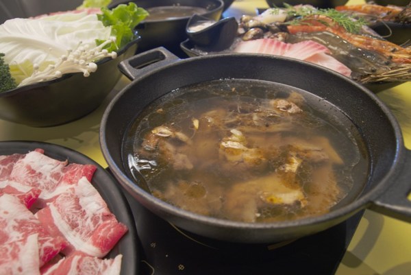 座上嗑主打個人石鍋,真材實料的湯頭是使用新鮮的蘿蔔、玉米、洋蔥、高麗菜等蔬果跟大骨一起人工慢火熬煮而成,絕不添加味精及雞湯粉等人工添加物,嚐起來鮮甜回甘。