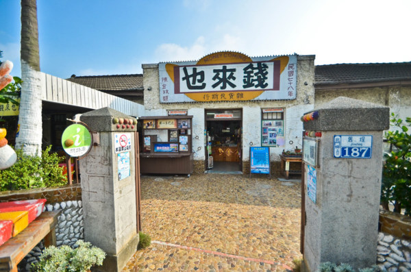 建於1952年的台鹽鹽工福利社,是一棟傳統斜瓦平房是早期提供鹽工購買日常用品的場所及育樂中心,直到2001年北門鹽場停業才被閒置,2003年的空間再造,讓這棟歷史悠久且具在地產業代表性的老屋煥然一新,牆壁利用當地廢棄的鹽田瓦片、貝殼、蚵殼舖滿整棟屋子牆面,外圍院子也掛了不少貝殼及浮球等裝飾,讓錢來也雜貨店還有個很海洋風的名稱「貝殼屋」,改造完成後委由廠商管理,讓錢來也雜貨店恢復往常的榮景,內部販售的各式古早味零食及在地風格的紀念文創商品,是許多遊客來到北門後一定會去採買逛逛的地方。