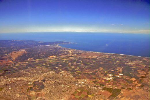 有點乾枯的底色 襯著一些綠綠的點 遠遠的海很藍