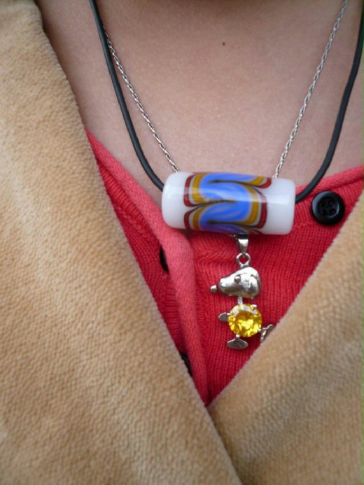 今天也到部落去訪問,排灣族的沙巴央‧比亞大哥送我一條琉璃當見面禮,我挑選了象徵貴族身分的尊貴之珠,這是排灣族裡最珍貴的琉璃珠,當頭目結婚時,聘禮中需要有尊貴之珠才足以顯現其身分地位,戴上尊貴珠也表示自己的身分高於他人,只有頭目家族的人才能佩戴。