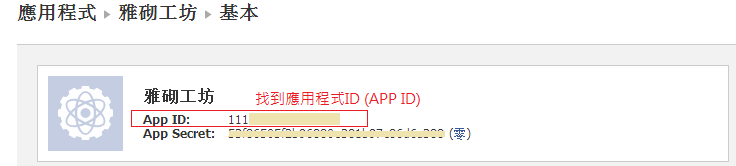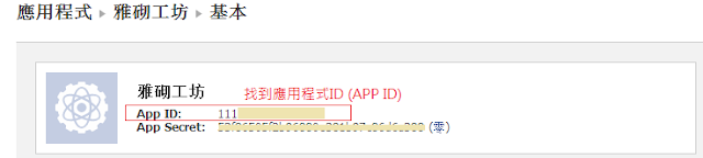 首先要去 Facebook 開發人員網頁建立一個新的應用程式(可按我前往),按照網頁的步驟一個個過關斬將輸入完成,總而言之,言而總之,最後就是要取得所謂的應用程式 ID (APP ID)就對了(若有申請好應該可按這裡找到)。
