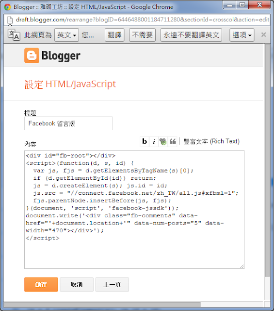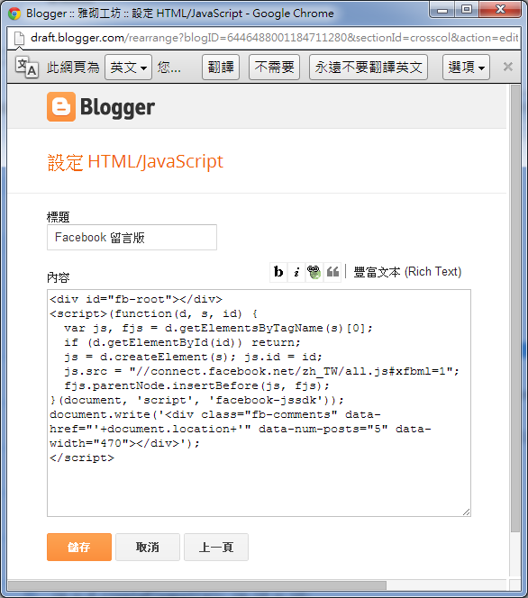 Blogger 嵌入 Facebook Comments 留言板功能教學