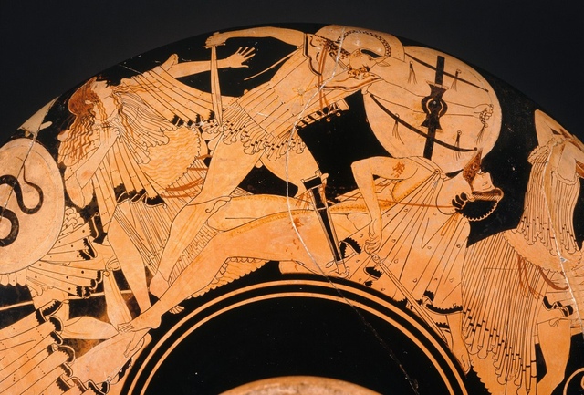 這是件古希臘陶作的酒杯,上頭的花紋描繪著特洛伊戰爭中,希臘攻佔特洛伊的最後一夜,激烈的混戰的場景。在提到這經典的故事前,我想先說明一下我查到希臘彩陶的藝術之美。