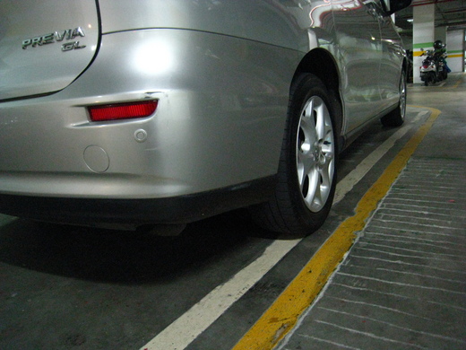 因為先前已經有過一次的經驗,所以我們雙方對於停車這件事都會特別注意,避免類似的情形再次發生。但是有一天晚上,當我開車要出門的時候,突然聽到ㄎ一聲,我驚覺不對勁,從照後鏡查看,果然是去ㄟ到了...趕快下車查看,結果我的車身也受到刮傷,當然他的保險桿漆也掉了...在前一次經驗中,車主說他們很顧車,所以一點點小傷,也會去把他回復成原狀..那時覺得既然是自己的疏忽..也就認賠..其實如果真的不仔細看的話,根本不會發現有掉漆..而這一次,他們車子雖然還是停在停車格內,但是後輪押到停車線,同時車身離停車格的後面僅有一小段距離,但是車頭離停車格卻留了很大的空間。我看到這種情況,很不爽,因為我覺得之前已經有一次經驗了,應該考量到旁邊車主出入的問題,我相信他應該不是故意的,但為何如此不經心。我馬上拿了相機把整個情況給照了下來,想等那位車主來找我時,再拿給他看。即使我也打定了,他要求我就會賠償的心裡,不過也想再次提醒他,停車時應該多注意一些。